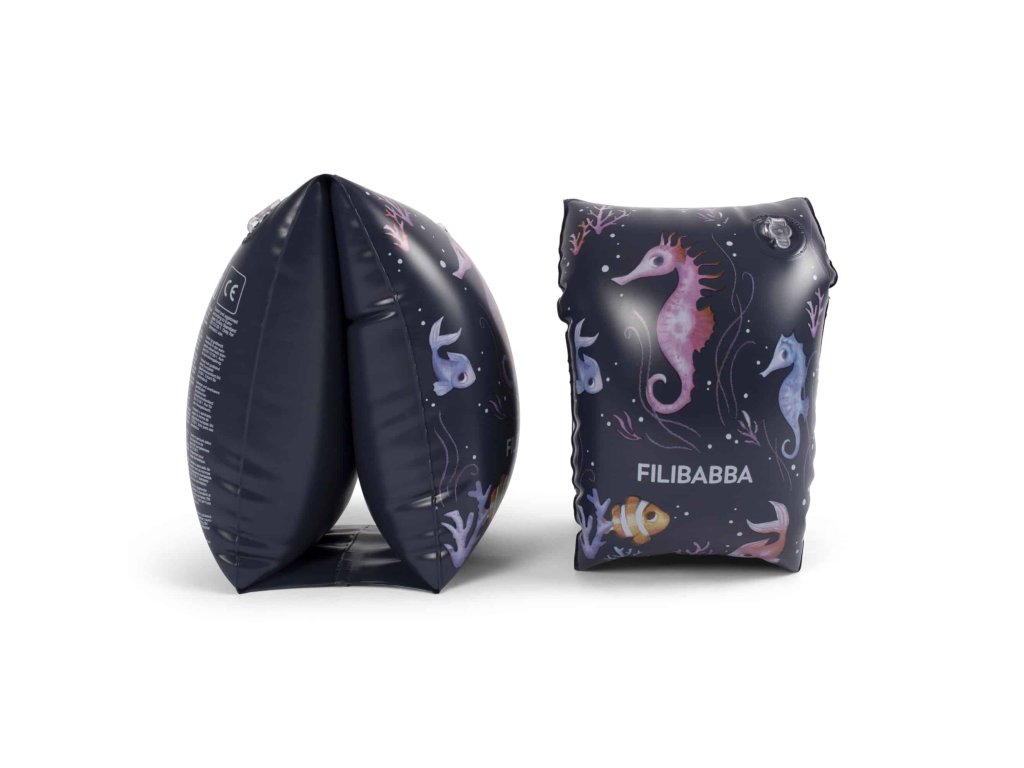 Semmi sem ér fel azzal, mint egy tengeri csikóval lovagolni a korallzátony felett! A tengeri csikó mintás úszókarok optimális biztonságot és kényelmet nyújtanak gyermekeinek, amikor elkezdik felfedezni a vizet. Ez tökéletes kiegészítő azoknak a gyerekeknek, akik szeretnek a vízben lenni, de még nem tanultak meg úszni.