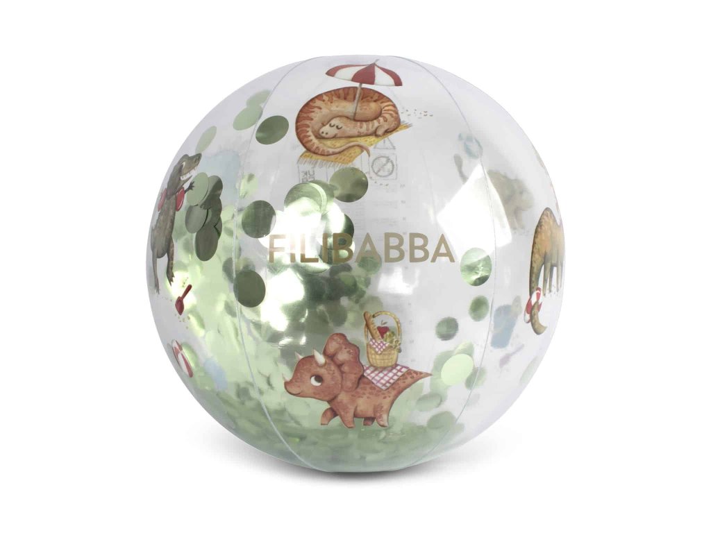 Nézze meg ezt az aranyos nyomatot! Ki ne szeretné a dinoszauruszokat? A „Dino Beach” nyomat a prehisztorikus óriásokat hozza a tengerpartra. Találj egy evező T-Rexet, ússz egyet egy Plesiosaurusszal, vagy élvezz egy szeszélyes pikniket egy Triceratopsszal. Ezekkel a gigantikus csapattársakkal nincs hiány a kalandokban. A különlegessége, hogy a labda átlátszó és szórakoztató szivárványos konfettivel van megtöltve.