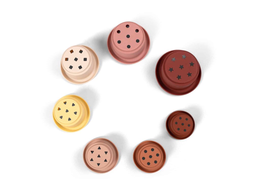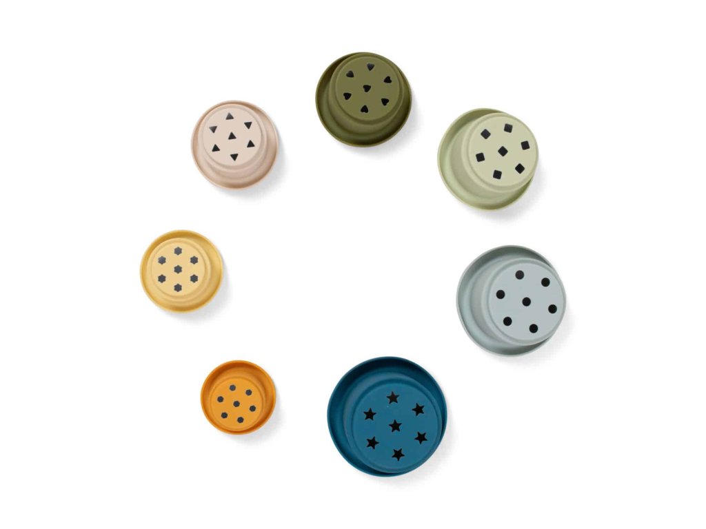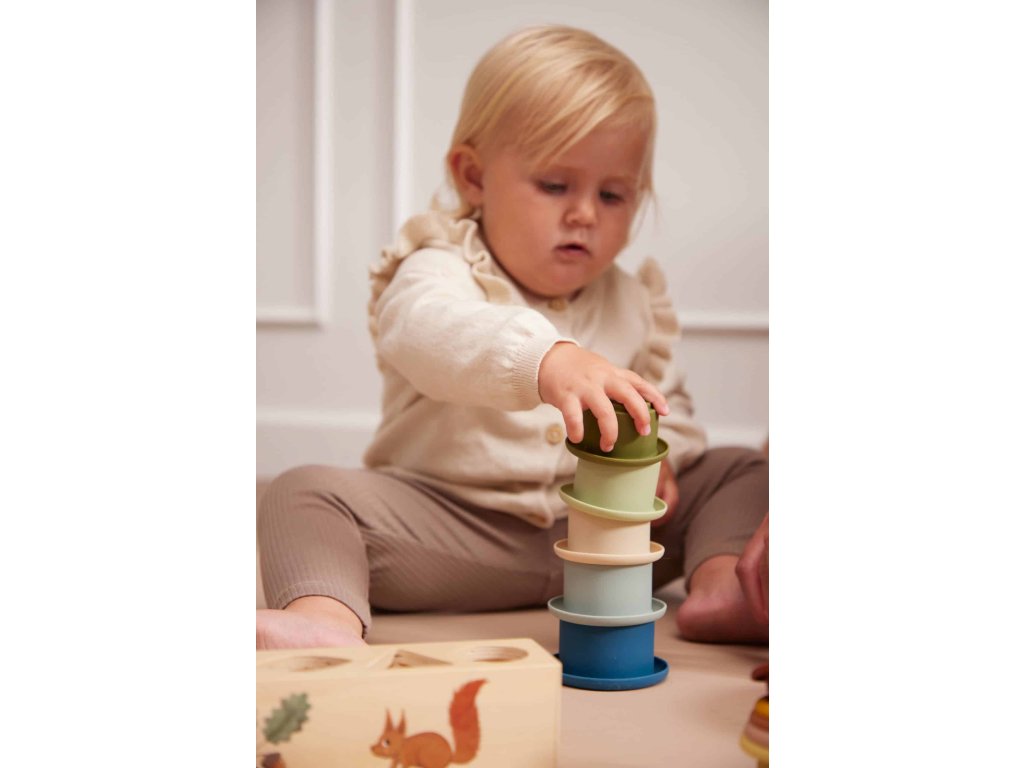 A mi egymásra rakható játékunk, amely 7 szilikon pohárból áll, sok szórakozást nyújt, fejleszti gyermeke finom- és nagymotoros készségeit, valamint a szem-kéz koordinációt.