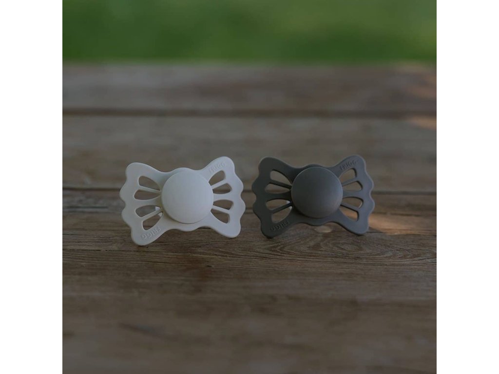 A FRIGG Butterfly egy anatomikus cumi, amely a száj formáját követi. A cumit úgy tervezték, hogy kisebb nyomást gyakoroljon az ínyre, az ínyre és az állkapocsra, és ez a leggyengédebb cumi. Ez csökkenti a ferde fogak és a ferde harapás kockázatát. A fogszabályozó kialakítás ideális a gyermek fogainak, állkapocsának és szájpadlásának megfelelő fejlődésének elősegítésére.