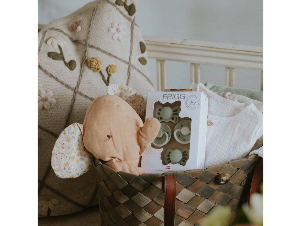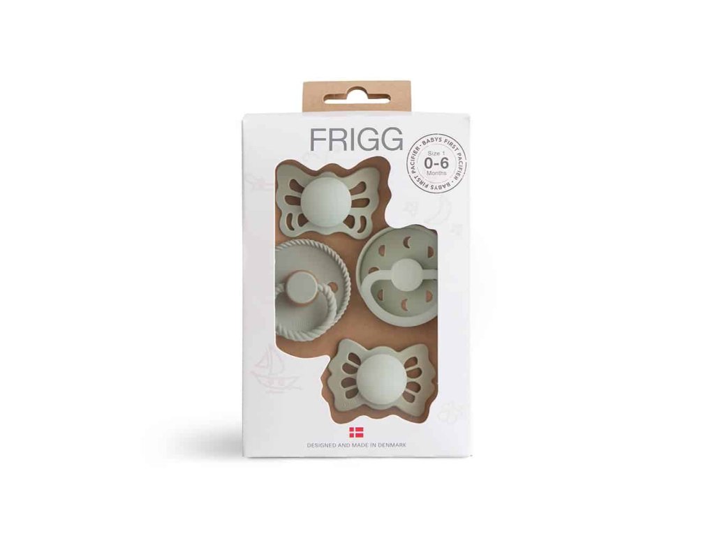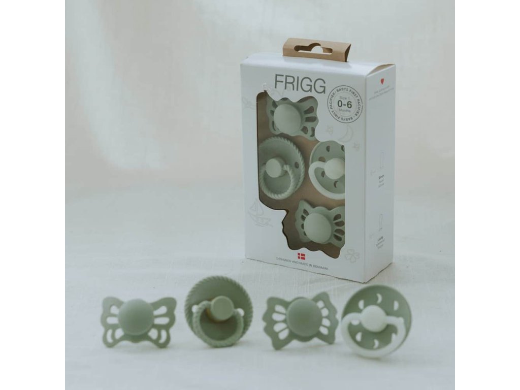 A FRIGG „első cumi babáknak” készlete 4 különböző cumiból álló FRIGG, különböző anyagokkal és mellbimbó formákkal, lehetőséget ad a szülőknek, hogy kipróbáljanak különböző cumikat, hogy megtudják, melyik tetszik a legjobban a babájuknak.