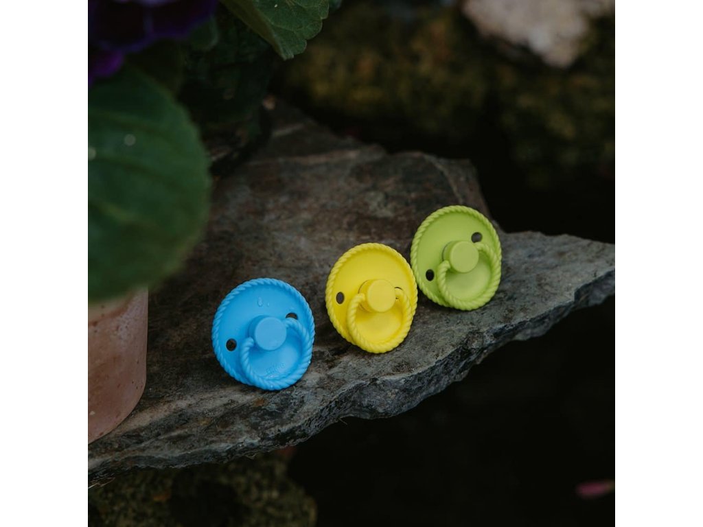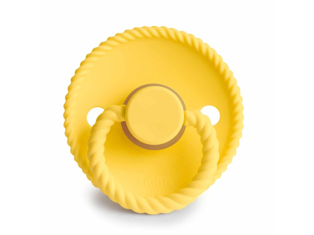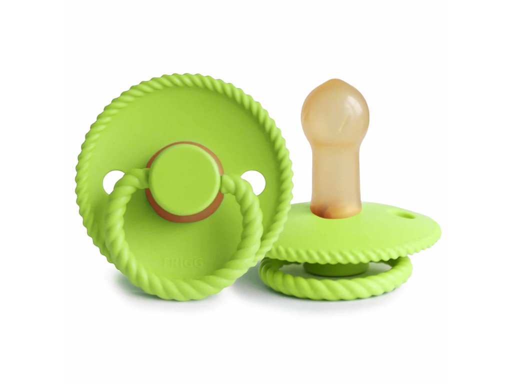 A FRIGG Rope egy cumi kerek cumi formával. A kerek cumi formája és anyaga az anyai mellet idézi. A magyarázat az, hogy amikor a baba szoptatni készül, a nyelve felcsavarodik a mellbimbó köré, és negatív nyomást hoz létre, ami tejáramlást okoz. Amikor a baba kerek cumit szopik, ugyanúgy görgeti körülötte a nyelvét.