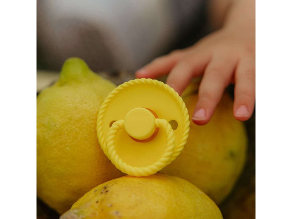 Kerek kaucsuk cumi, 6-18 hónapos korú gyermekek számára alkalmas, kötél mintával.