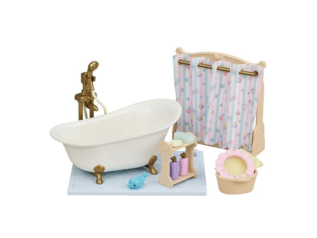 A lábas és a szabadon álló zuhanyfej bárhol elhelyezhető a mellékelt, csempézett alaplapon. Van egy szép zuhanyfüggöny is, amelyet a kádba való be- és kilépéskor egy rúdon lehet behúzni. Töltsd meg a fürdőszobai polcot minden kedvenc szappanoddal és fürdőjátékoddal. Az aranyos zuhanysapka megakadályozza, hogy víz kerüljön a szembe! A fürdő- és zuhanyszett tartalma: 1 x kád, 1 x zuhany, 1 x alaplap, 1 x zuhanyfüggöny és rúd, 1 x szennyestartó kosár, 1 x polc, 1 x törölköző, 2 x szappantartó palack, 1 x zuhanysapka, 1 x szivacs, 1 x szappantartó tál, 1 x delfin kádjáték. Csomag mérete: 13x12,5x6cm. Életkor: 3+.