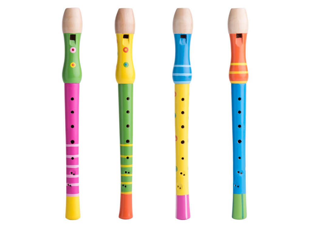 Életkor: 3+ | Méret: 33 cm | Sokszínű, funkcionális fa fuvola. A karton összesen 12 db-ot tartalmaz - 4 féle színben, 3-3 db: sárga-kék, kék-narancs, rózsaszín-zöld, zöld-sárga