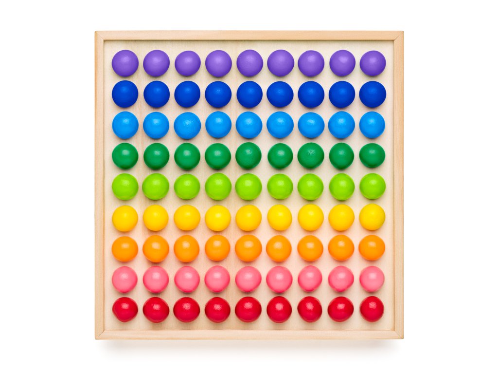 Golyókkal játszható motoros készségfejlesztő játék, egyszerű társasjátékokkal kombinálva. A gyerekek a minták szerint építenek képeket, de a golyókat egymásra is rakhatják, hogy kis piramisokat hozzanak létre. Mindez fejleszti a finommotorikát. A logika fejlesztéséhez itt vannak a terveink egyszerű társasjátékokhoz, mint például az Ember, ne légy mérges, a Tic-tac-toe, a Dáma, a Sudoku és a Nyilak. Tic-tac-toe: Játék két vagy több játékos számára. A játékosok felváltva helyezik a színes golyókat a játéktáblára. A cél az, hogy öt saját színű golyósorozatot hozzanak létre egymás után - vízszintesen, függőlegesen vagy átlósan. Ennek a sornak egyenes vonalat kell alkotnia, és az ellenfél színe sehol sem szakíthatja meg. Aki először létrehoz egy ilyen sort, az nyer. Ne haragudj, haver: Minden játékos feladata, hogy a golyóit egészen a célig mozgassa, ami három azonos színű négyzet a játéktábla közepén. Az nyer, akinek előbb sikerül. A többi játékos addig folytatja a játékot, amíg ők is el nem érik a célterületüket. Dáma: A játék kezdetén az ellenfeleknek 9 üveggolyójuk van az első két sorban, a szemközti oldalakon. A golyók átlósan mozognak a fekete négyzeteken, előre, de hátra nem, és nem ugorhatnak át a saját színű golyókon. Amikor egy normál üveggolyó eléri a tábla másik oldalát, királynővé alakul azáltal, hogy a színe narancssárgáról pirosra és világoszöldről sötétzöldre változik. A királynő átlósan, előre és hátra tetszőleges számú mezőt mozoghat. Ha a golyó átlósan egy ellenfél golyójának szomszédságában található, amely mögött szabad terület van, akkor köteles azt átugrani, elfoglalni a szabad területet és eltávolítani az átugrott golyót a tábláról. Az ugrás kötelező. Ha a játékos tud dámával és sima golyóval is ugrani, akkor dámával kell ugrania. Többszörös ugrás esetén az összes golyó eltávolításra kerül a teljes sorozat befejezése után. Az a játékos, aki éppen következik, és nem tud lépni (nincs golyója, vagy az összes el van zárva), veszített. Színes sudoku – egy változat, ahol az 1-től 9-ig terjedő számok helyett 9 különböző színt talál. Ahogy a klasszikus szudokuban, itt is az az alapvető szabály érvényes, hogy minden szín csak egyszer fordulhat elő minden sorban, oszlopban és kis négyzetben. Nyilak: A játékosok felváltva dobnak a kockával az óramutató járásával megegyező irányban, és a golyóikat a kockán lévő számnak megfelelő mezőre mozgatják. Az irányt nyilak jelzik. Ha a golyó megáll: 1. narancssárga nyílnál: egy sorral feljebb lép. 2. lila nyílnál: egy sorral lejjebb lép. 3. rózsaszín nyílnál: egy mezőt hátra lép. 4. piros dupla nyílnál: 2 mezőt hátra lép. 5. zöld nyílnál: egy mezőt előre lép.
