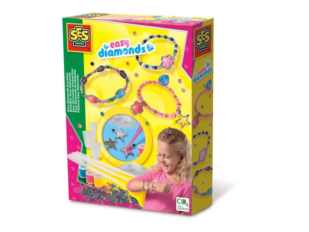 Te is szereted az ékszerek készítését? Ezzel a SES készlettel könnyedén készíthetsz gyönyörű karkötőket különleges effektekkel. Vegyél egy kis gyémántport, helyezd az ezüst alapra, és cseppents rá tetszőleges színt. A szín hatására a por megszilárdul, és a varázslat elkészült! A szín hatására a por megszilárdul, és a varázslat elkészült! Tervezd meg saját, egyedi karkötőidet. A készlet tartalma: 9 db gyémánt, gyémántpor, 3 db színes oldat, 3 db mérőpohár, 3 db pipetta, rugalmas zsinór, vegyes üveggyöngyök, útmutató. Csomag mérete: 15 x 20 x 4 cm. Kor: 6+