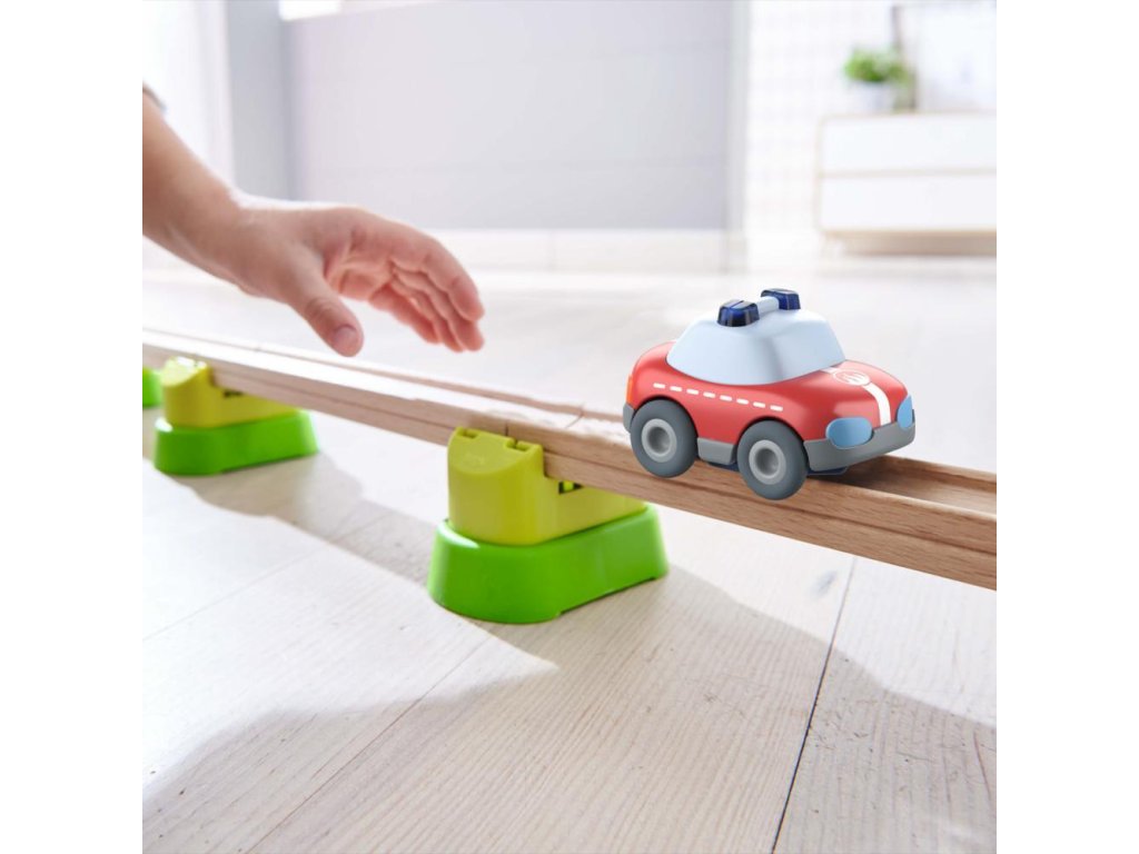 Az új beavatkozó járművek még több szórakozást, változatosságot és vezetési sebességet hoznak a HABA Kullerbü játékrendszerébe. A kifinomult lendkerék-motornak köszönhetően egy gyors lökés elegendő ahhoz, hogy a mentőautó, a tűzoltóautó és a rendőrautó végigszáguldjon az utakon, és nagyon gyorsan elérje a célját. A járművek nagyszerű vizuális hangsúlyokat is adnak.