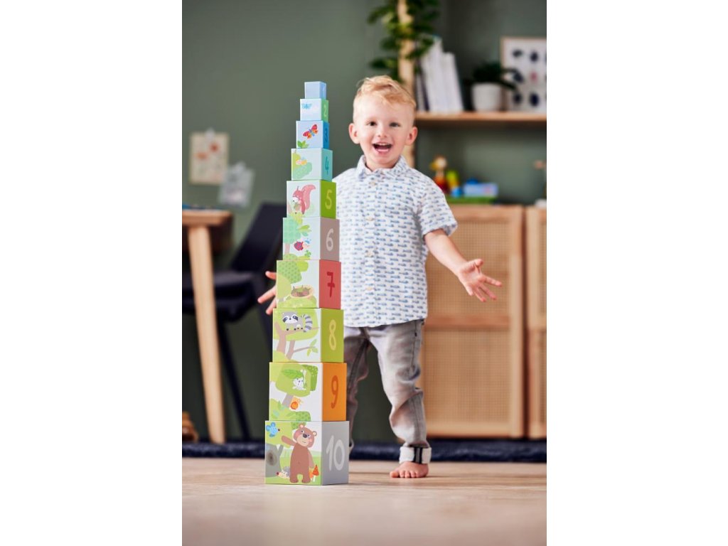 1 éves kortól alkalmas gyermekek számára, és az 5 éves gyermeket is szórakoztatja, aki éppen most tanulja a dolgok méret szerinti rendezését, vagy a számok és azok sorrendjének felismerését 10-ig. A játék 10 kerek darabot tartalmaz, amelyek egymásba rakhatók.