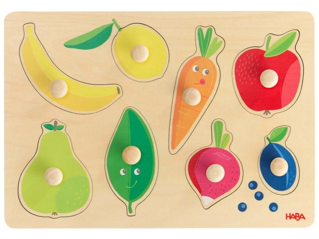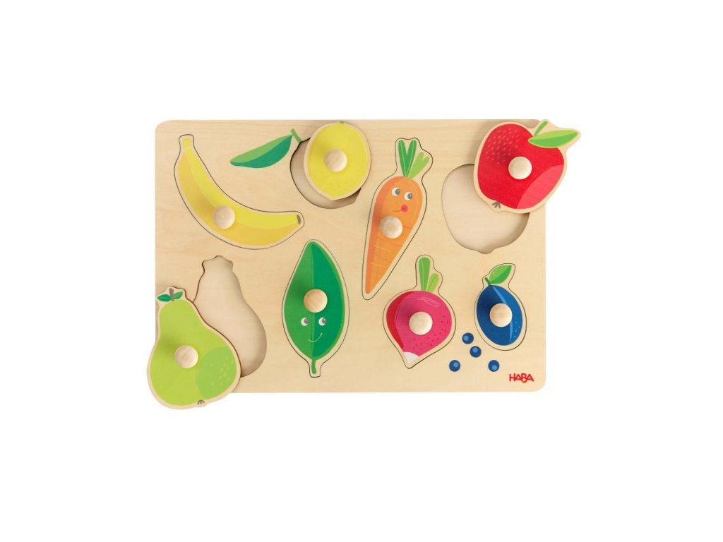 Haba Fa berakó puzzle fogantyúval – Gyümölcsök és zöldségek színei