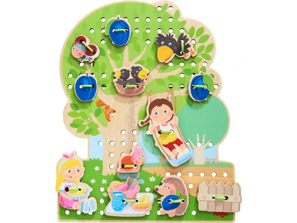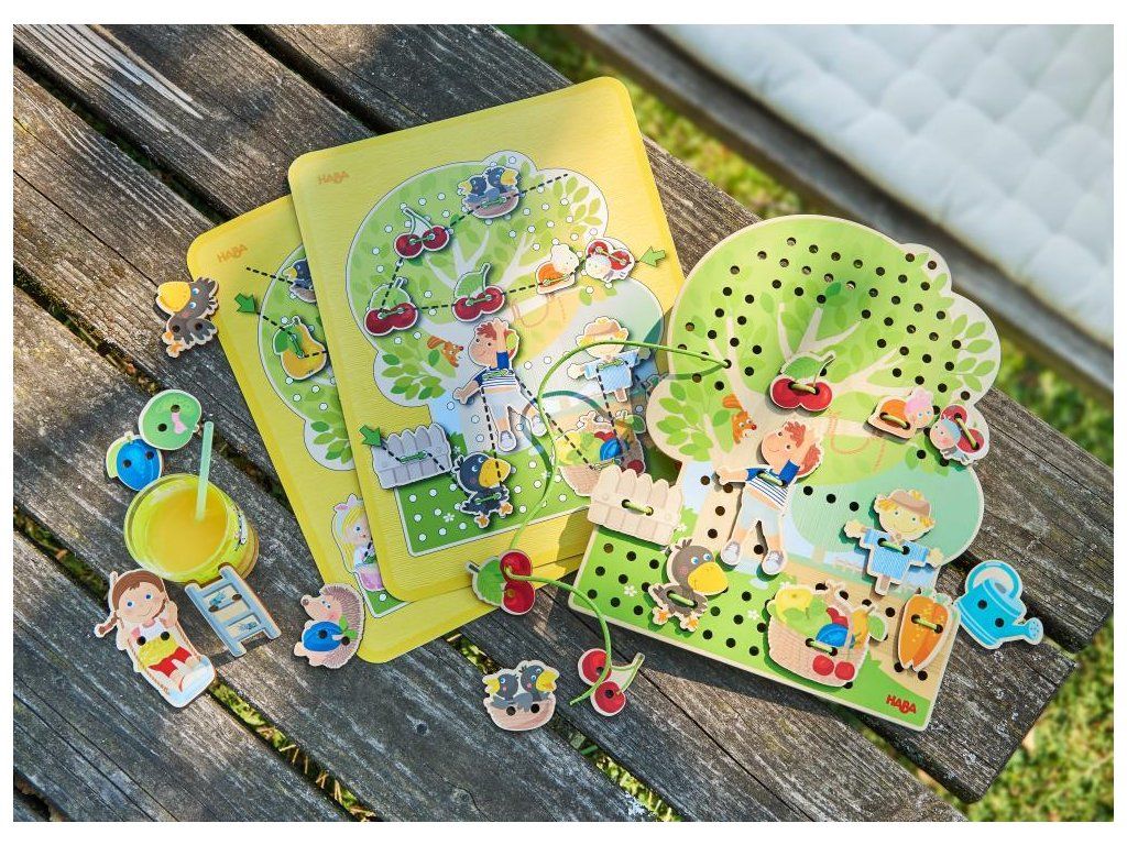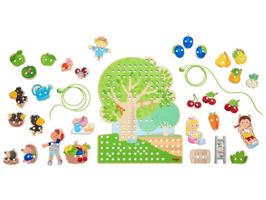 Szórakozás minden kis gazdálkodó számára! A darabok a gyermek hangulatának vagy a sablonnak megfelelően felfűzhetők a Gyümölcsöskert témájú alátétre.