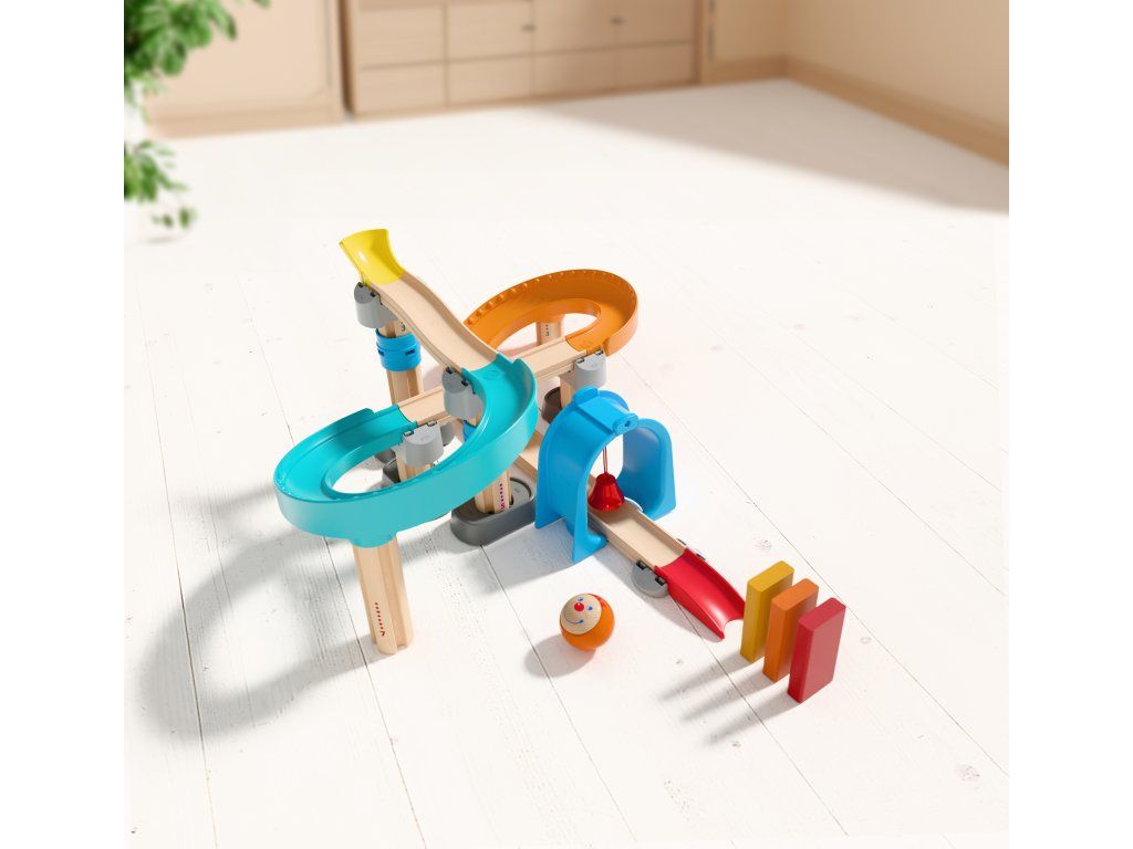 Míg a legkisebb gyerekek szívesen fedezik fel a labdát, és csodálattal nézik, ahogy gurul, a nagyobbak segíteni akarnak a darabok kiválasztásában és felépítésében. Így egyenes pályából fokozatosan bonyolult pálya fejlődhet ki – mindig a gyermek aktuális fejlődési szakaszához igazítva. Különböző elemek extra szórakozást nyújtanak.