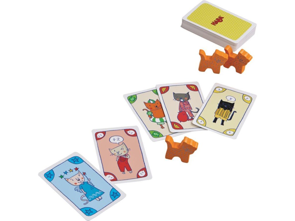 Tartalom: 32 macskakártya 4 színben, 20 speciális kártya 4 színben, 6 macska és játékszabályok.