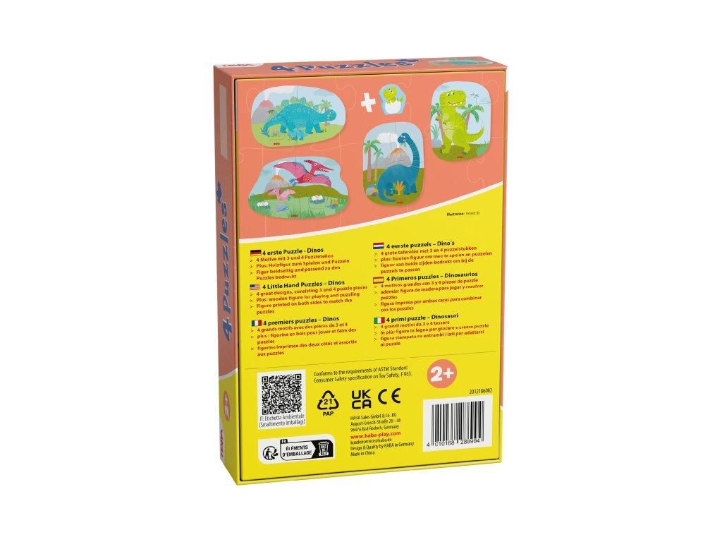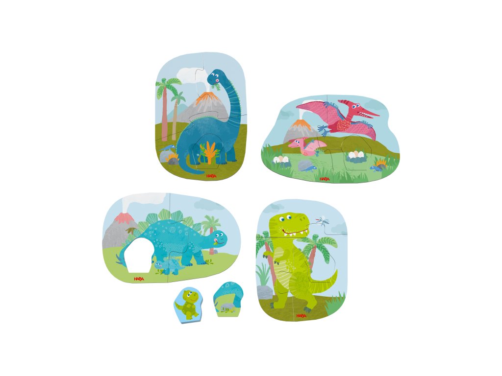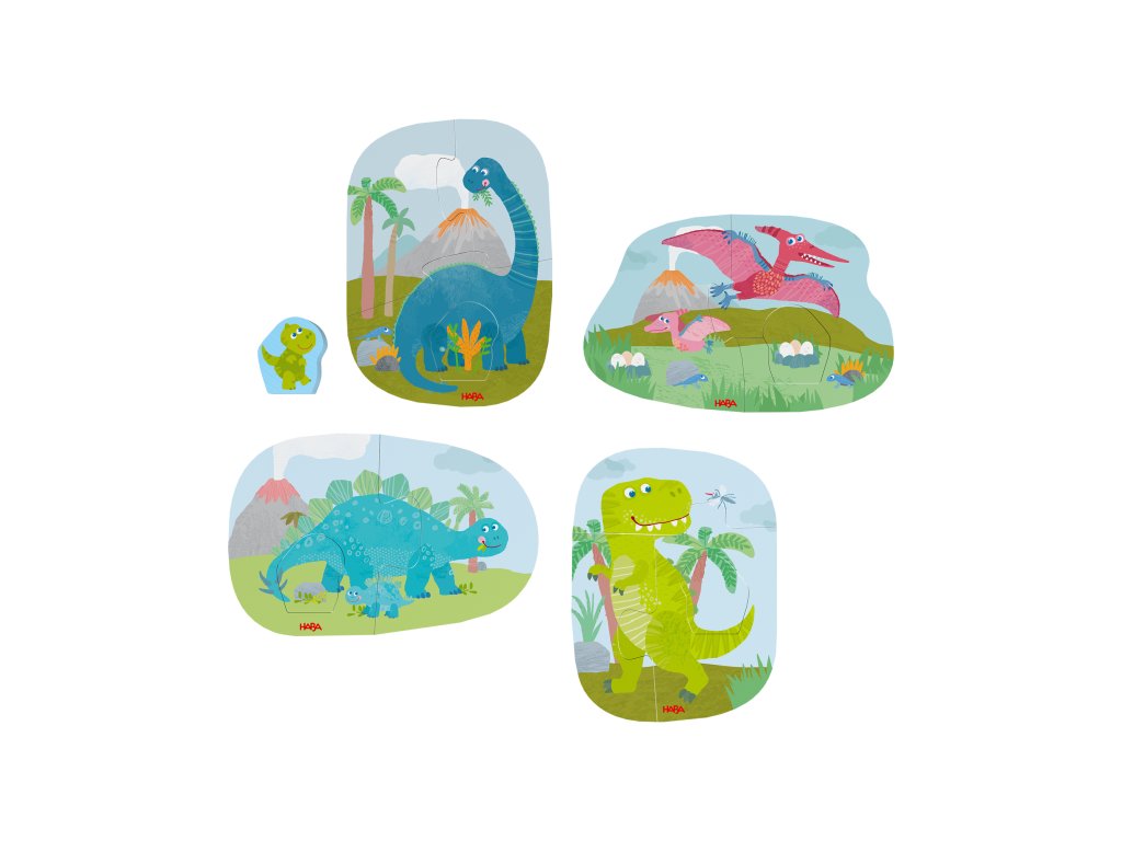 A 4 darabos, fa figurás „Dinos” puzzle készlet remek bevezető a 2 évesnél idősebb gyermekek számára az összeillesztéshez. A dinoszauruszok vidám motívumai sok örömet okoznak az első összeillesztési kísérletek során.