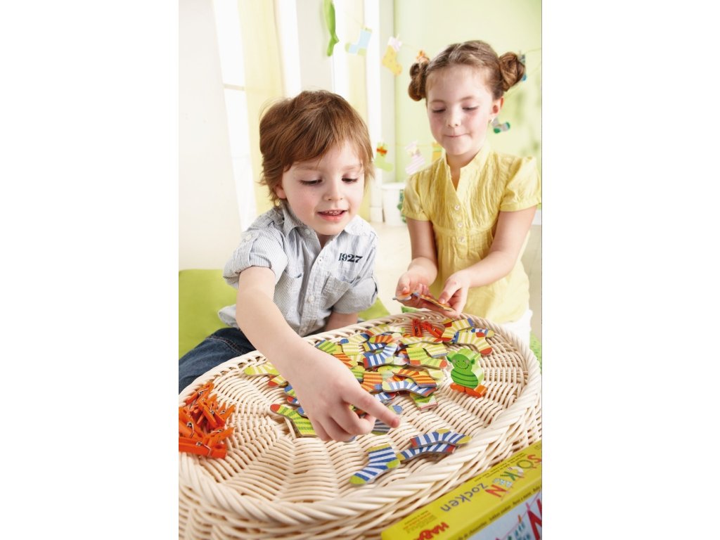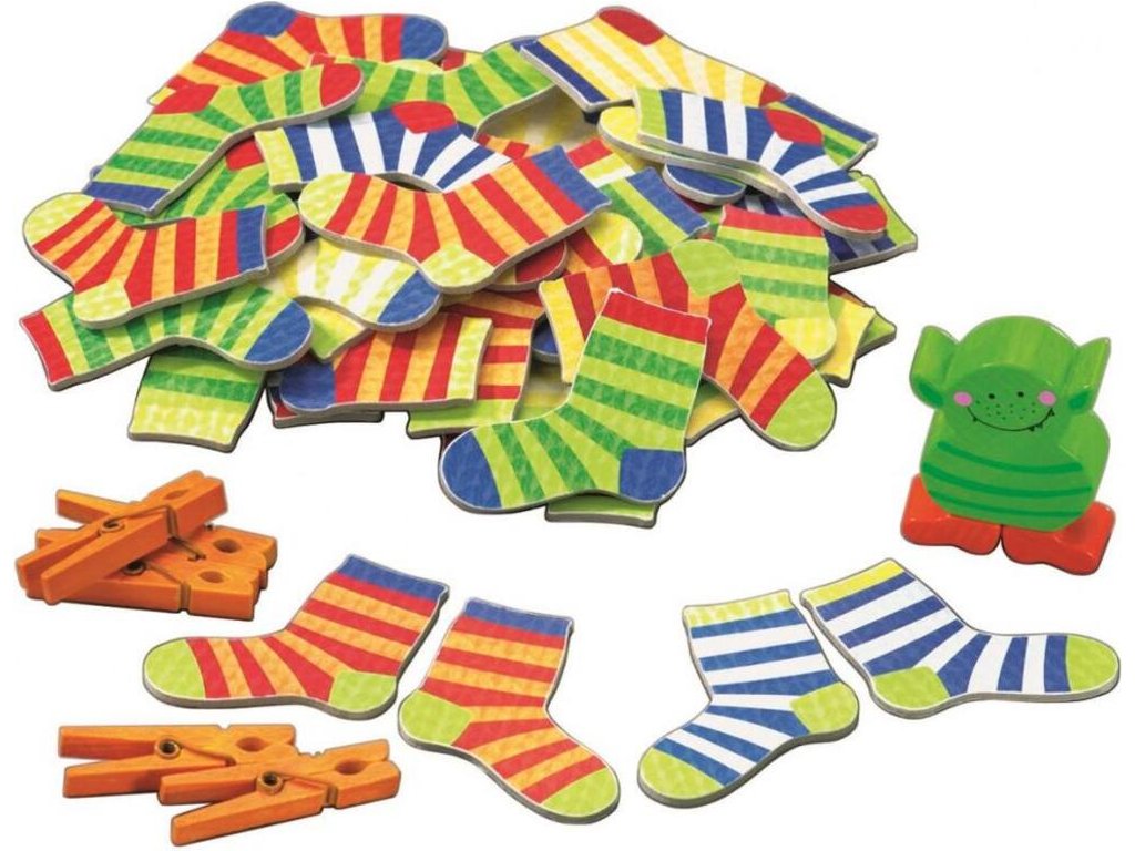 A csomag tartalma: 1 zokniszörny, 48 zokni (24 pár), 13 ruhacsipesz, 1 játékszabály.