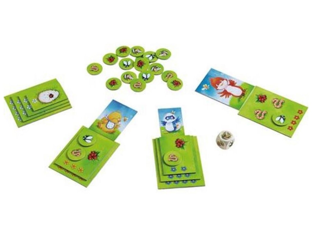 Tartalom: 4 kártyakészlet (1 készlet = 4 kártya), 20 etetősor, 1 kocka, 1 lap 6 matricával és játékszabályok.