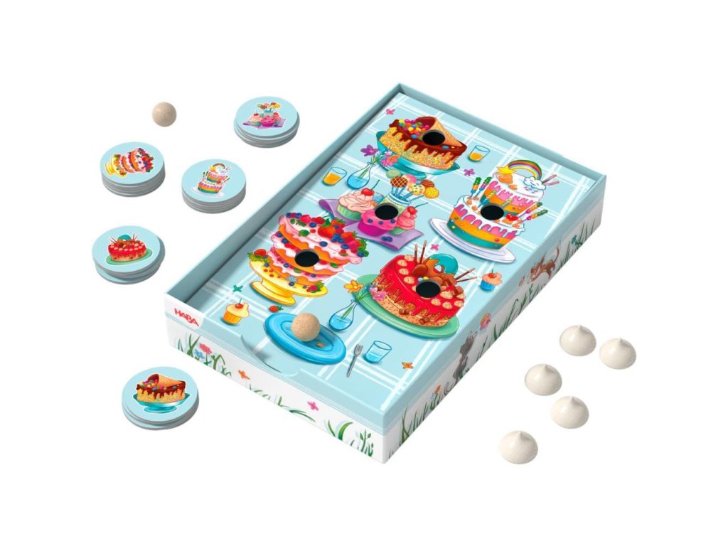 Ez a játék fejleszti az ajkak és a száj motorikus képességeit, és játékos módon támogatja a beszédfejlődést. A játékosok megtanulnak céltudatosan lélegezni, és egyidejűleg szabályozni a lélegzetük hosszát és erejét.A játék akkor ér véget, amikor az utolsó habcsók is kiosztásra került. Aki a legtöbb hócsókot összegyűjti, az nyer, és "A habos sütemények királyának" nevezheti magát.Kiváló zselé és csokoládétorta - a játékosok a lélegzetükkel indítják el a labdát, hogy elérjék ezeket a finomságokat. Helyezze a labdát a megfelelő lyukba, és nyerjen egy krémes habcsókot.Gyermekeknek ajánlott: 4 éves kortólJátékosok száma: 1-4