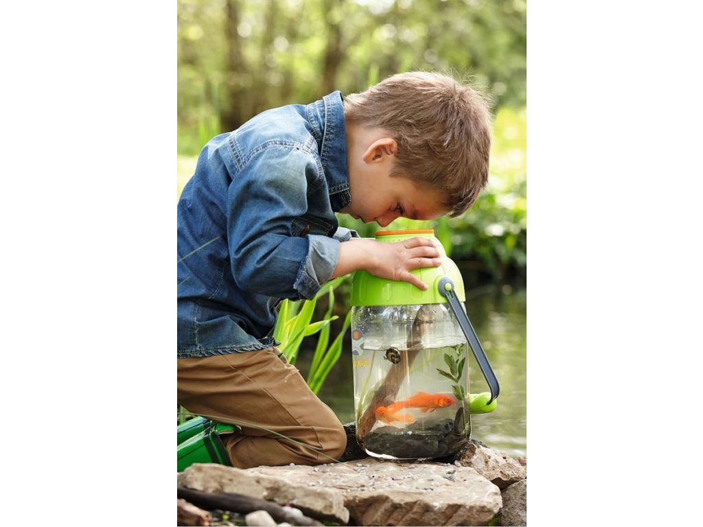 Bogarak, csigák, levelek, megkövesedett tárgyak és még sok más megfigyelhető és biztonságosan szállítható ebben a tágas tartályban, amely beépített nagyítóval, szellőzőnyílásokkal és egy nagyítóval rendelkezik a csavaros fedélben.