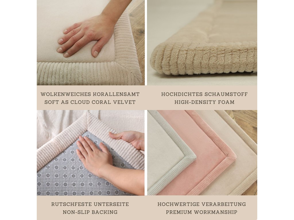 Squares gyerekszőnyeg 2 x 1,5 m Biztonságos és kényelmes hely a játékhoz A Squares gyerekszőnyeg nagyszerű hely a gyerekeknek a játékhoz, mászáshoz és pihenéshez. Három rétegből áll – puha korallbársonyból, kényelmes, rugalmas memóriahabból és csúszásgátló alátétből, amelyek biztonságos és kényelmes játékot garantálnak a földön. A memóriahab 2,5 cm vastag és gyorsan visszanyeri eredeti alakját, ami előny a olcsóbb szőnyegekkel szemben. A 200 x 150 x 2,5 cm-es méretével nemcsak a gyerekjátékokhoz elég nagy, hanem jógához vagy relaxációhoz is.Stílusos és praktikus kiegészítő otthonába A modern mintázatú gyerekszőnyeg tökéletesen illeszkedik nappalijába vagy gyerekszobájába, és harmóniát és kényelmet kölcsönöz. Praktikus kialakítása egyszerű gondozást és könnyű karbantartást tesz lehetővé – csak porszívózza fel vagy törölje le nedves ruhával. Ráadásul káros anyagoktól, például BPA-tól és ftalátoktól mentesen készült, így biztos lehet benne, hogy gyermeke biztonságban lesz.