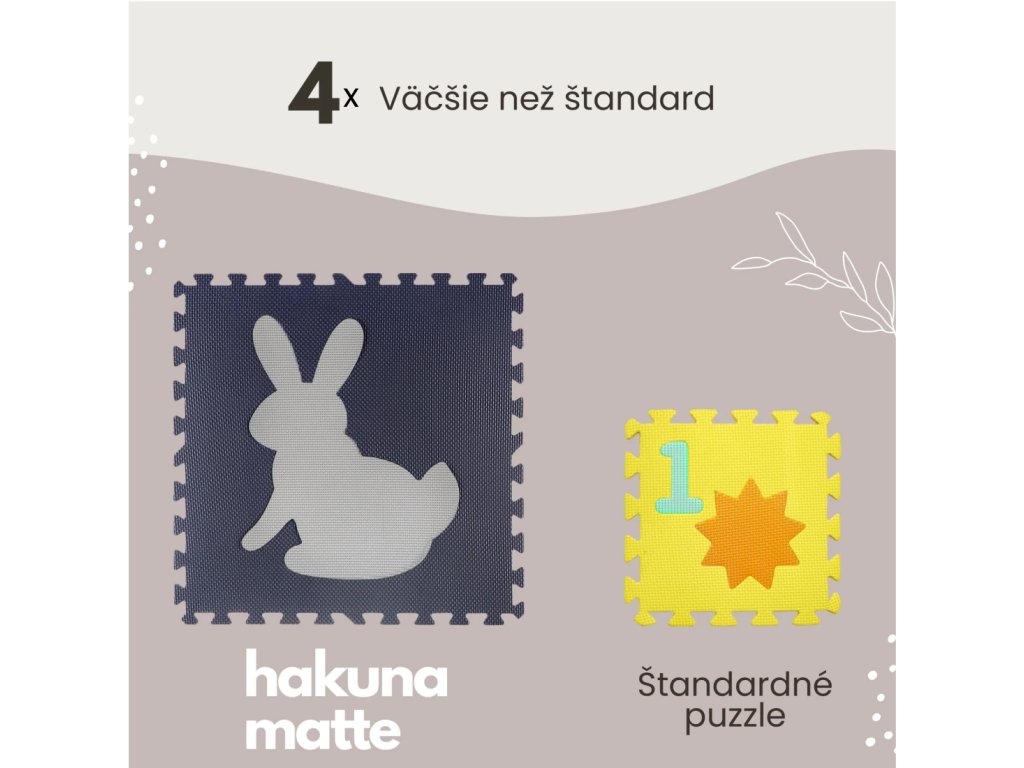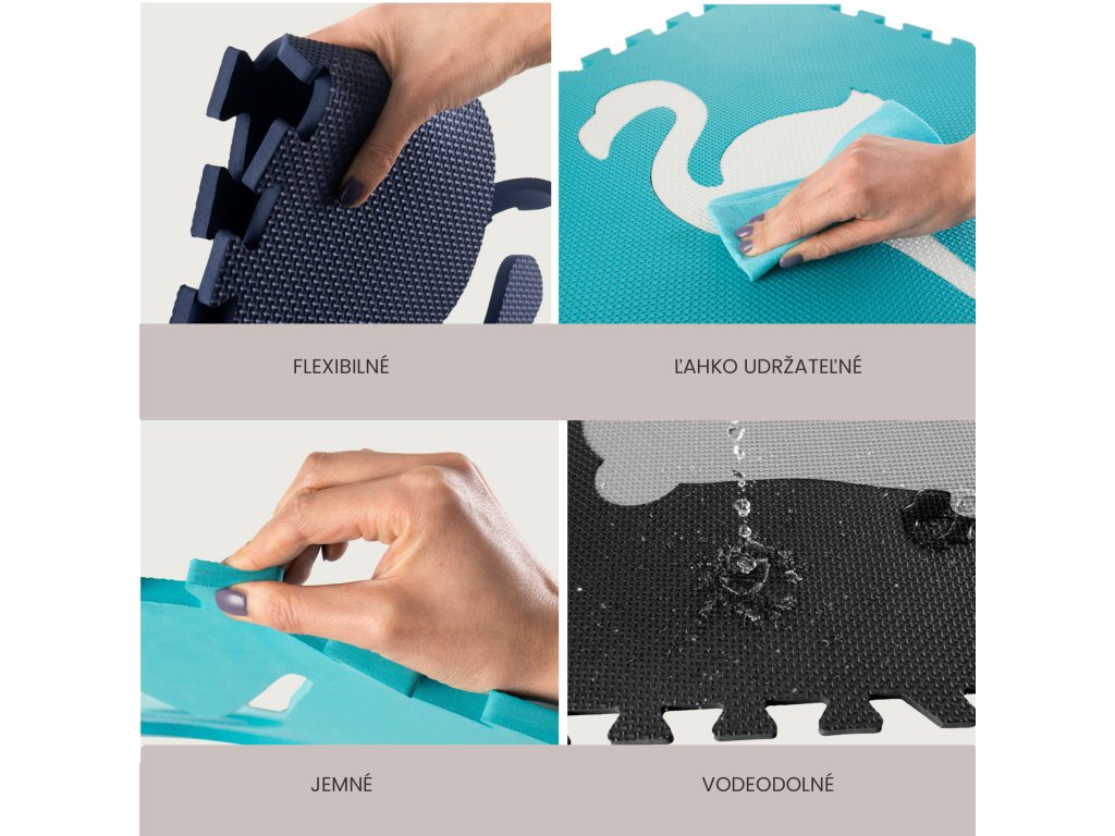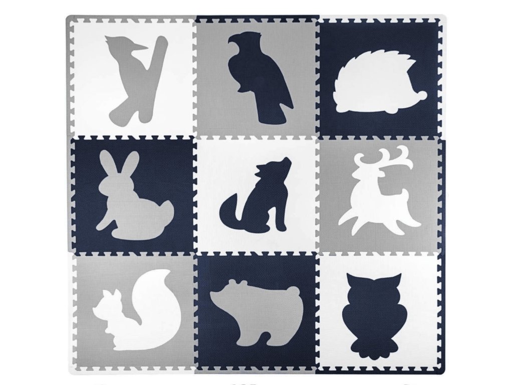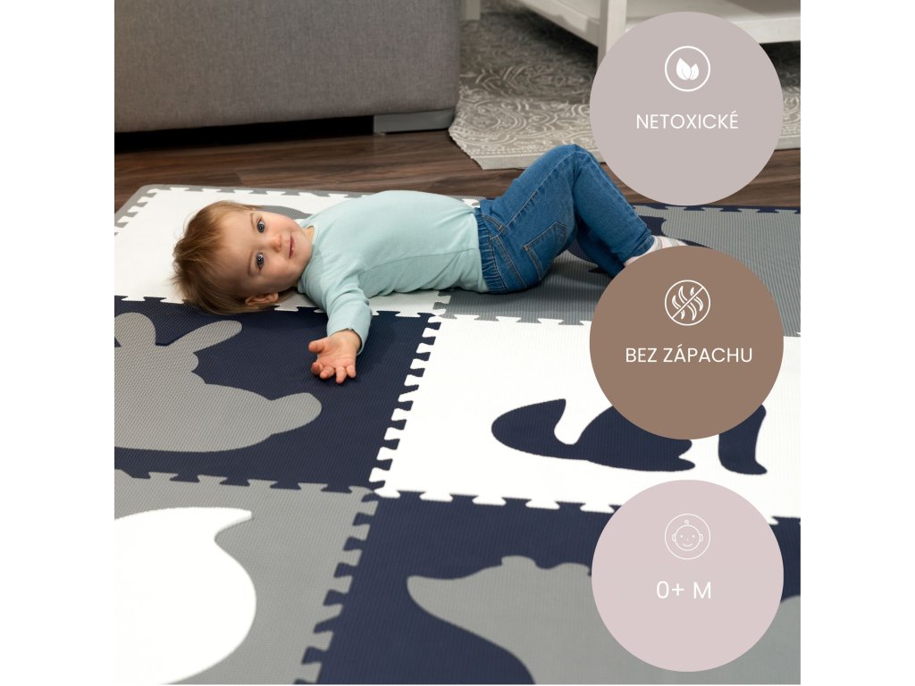 Puzzle XXL Erdei játszószőnyeg 1,8 x 1,8 m Játékos és kényelmes erdei mintás puzzle szőnyeg. Az Extra nagy Puzzle XXL Erdei játszószőnyeg 9 habszivacsból áll, amelyek 4x nagyobbak, mint a klasszikus puzzle darabok, ezért négyszer annyi helyet biztosít nemcsak a mászáshoz, játékhoz és gyermekkalandokhoz, hanem a különféle családi tevékenységekhez is. Használhatja jógához, sportgyakorlatokhoz vagy akár egy piknikhez a természetben. Az elegáns pasztell színek (fehér, szürke, sötétkék) skandináv esztétikát kölcsönöznek otthonának. A biztonságos csatlakozásnak és a nagy, egy darabból álló állatformáknak köszönhetően az összes puzzle darab szilárdan illeszkedik egymáshoz, így kényelmes "párnát" biztosít a kemény és hideg padlókon is.Biztonságos játszószőnyeg a legkisebbeknek A gyönyörű pasztell színekben pompázó játszószőnyeg minőségi EVA habból készült, amely 1,2 cm vastag és 20%-kal puhább és melegebb, mint más alternatívák, ami kényelmes és biztonságos játékot biztosít. A szőnyeg vízálló, és egyszerűen tisztítható szappannal és ronggyal, így nem csak otthon, hanem a szabadban is használhatja. Ráadásul 100%-ban szagmentes, és nem tartalmaz veszélyes anyagokat, mint például formamid, BPA és ftalátok.