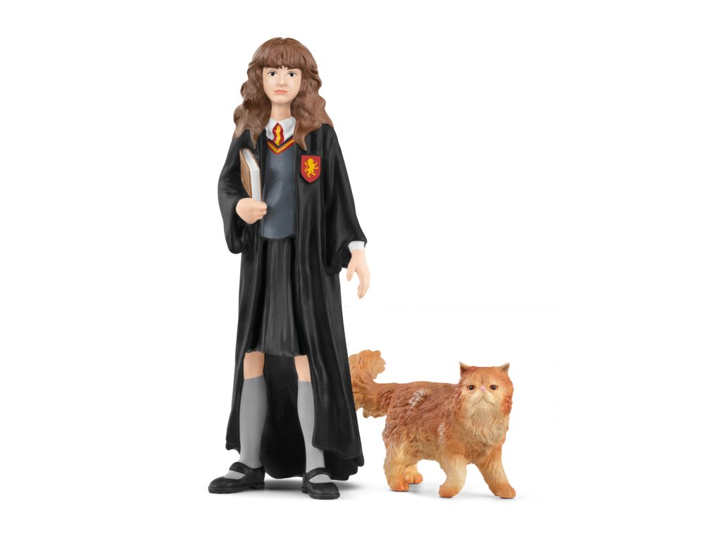 Hermione egy okos és szorgalmas diák, aki itt van nagyon intelligens háziállatával – Crookshanks™ kandúrral. A Griffendél kollégium szorgalmas diákja, Hermione Granger, könyvet tart a hóna alatt, miközben hűségesen kíséri őt intelligens házi kedvence – Crookshanks™ kandúr. Hermione, Harry egyik legjobb barátja és a Griffendél kollégista társa, okos és szorgalmas diák. Gyors ítélőképessége és lenyűgöző varázslási képességei számtalanszor segítik Harryt és Ront kalandjaik során. Itt van nagyon intelligens háziállatával, Crookshanks™ kandúrral, aki gyakran kíséri a triót kalandjaik során. Méretek: 15,5x18x8,2cm. Kor: 6+