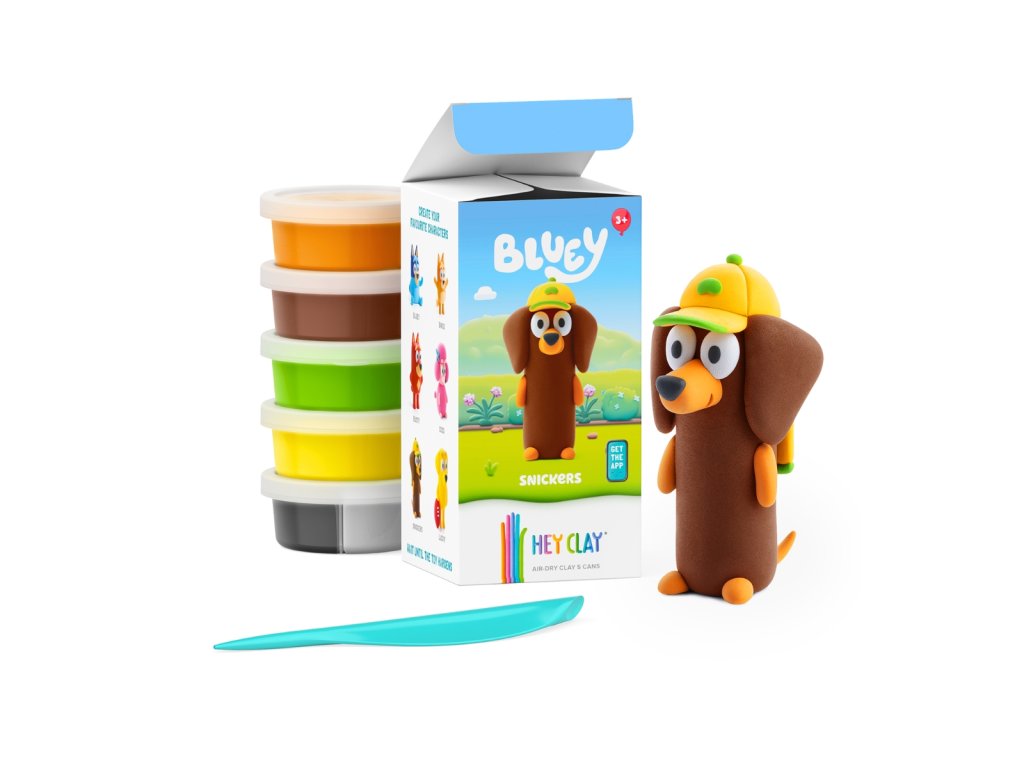 Hey Clay Bluey SnickersAlkossátok meg a saját Bluey világotokatMerüljetek el a Bluey fantázia világában! A Hey Clay: Snickers kreatív készletnek köszönhetően a gyerekek saját kezűleg alkothatják meg kedvenc karakterüket a kedvenc mesevilágukból. Fedezze fel az inspirációt az alkalmazásban, és készítsen karaktereket pontosan az utasításoknak megfelelően A készlet 5 tégely színes gyurmát tartalmaz. Ezenkívül az alkalmazáshoz való hozzáférési kód lehetővé teszi a gyerekek számára, hogy új ötleteket merítsenek, és pontosan az utasításoknak megfelelően hozzanak létre egy karaktert. Ha a gyerekek nem elégedettek a műveikkel, a Hey Clay egyszerűen visszarakhatják a tégelybe, és később folytathatják a modellezést. A gyerekek játék közben fejlesztik készségeiket, finommotorikájukat és fantáziájukat.