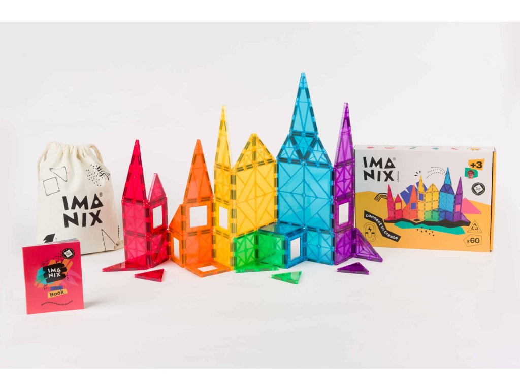 Imanix mágneses építőkészlet 60 színes, áttetsző elemmel a Braintoys-tól. Az Imanix lehetővé teszi a gyermekek számára, hogy 2D és 3D formákat építsenek, és szabadjára engedjék fantáziájukat és kreativitásukat. A színeknek, formáknak és a könnyű kezelhetőségnek köszönhetően a gyerekek végtelen építményeket hozhatnak létre (lapos figurák, állatok, virágok, járművek, tornyok, várak ...). Ezenkívül betűket, számokat, sokszögeket, ábrákat, törteket, matematikai műveleteket is alkothatnak... Az Imanix egy több előnnyel rendelkező játék.