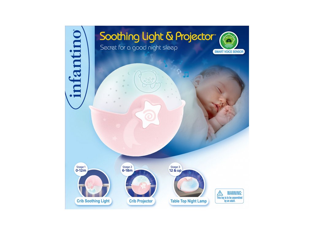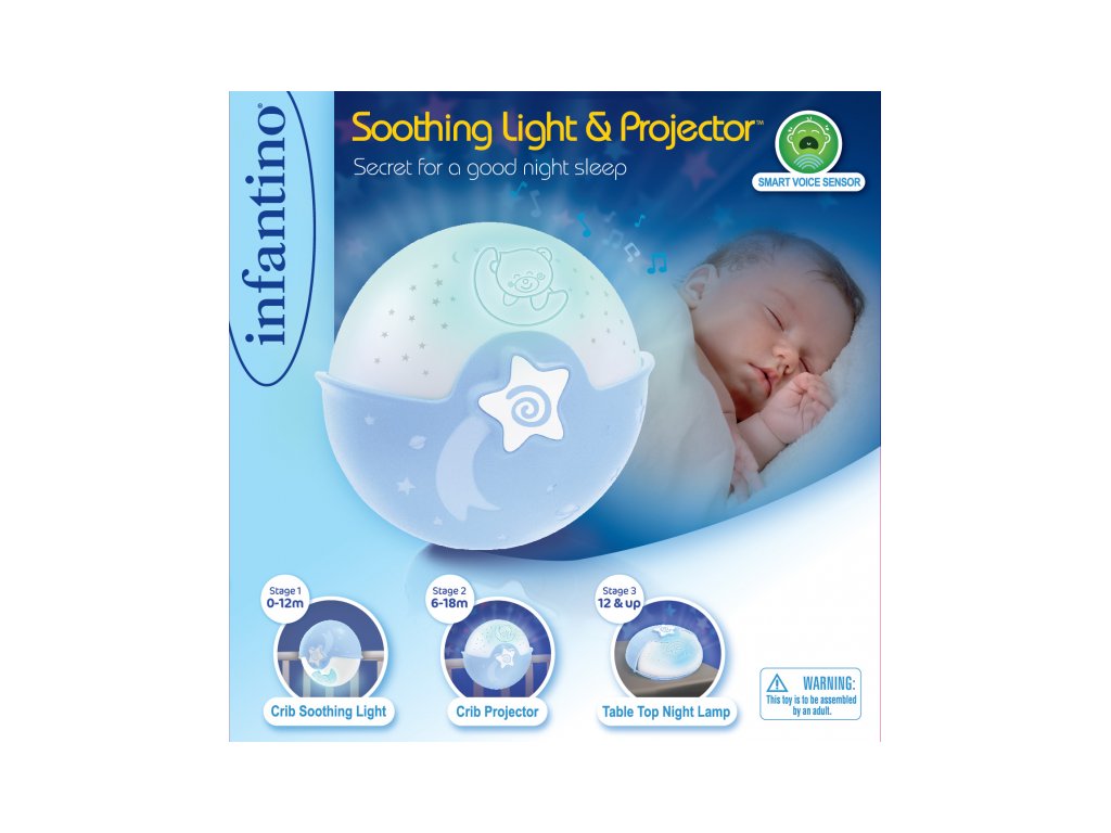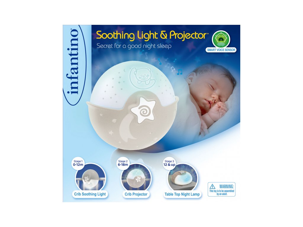 A lámpa 6 lágy melódiát és 3 természetes hangvariációt kínál, automatikus kikapcsolással 10 perc után. Ha a gyermek éjszaka felébred, a hangérzékelő aktiválja a megnyugtató, lágy fényt.