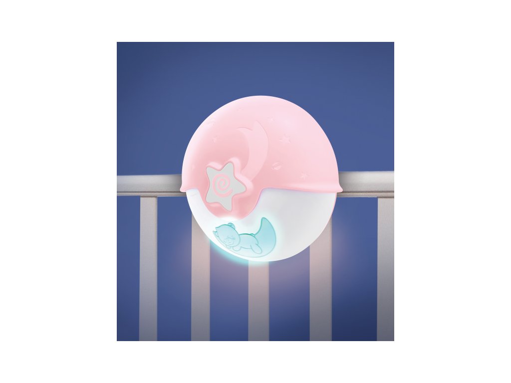A projektoros lámpa rögzíthető a gyerekágyra vagy elhelyezhető az éjjeliszekrényre.