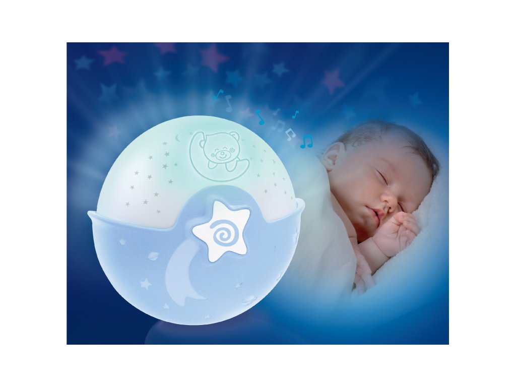 Éjszakai lámpa zenével és fényprojektorral a gyermeked nyugodt elalvásához. A lámpa csillagokat vetít a falra vagy a plafonra, így finoman megvilágítja a gyerekszobát.