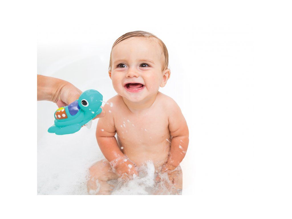 A fürdőkádba való úszó teknős, amely vizet spriccel, sok szórakozást biztosít gyermekének a fürdés során.