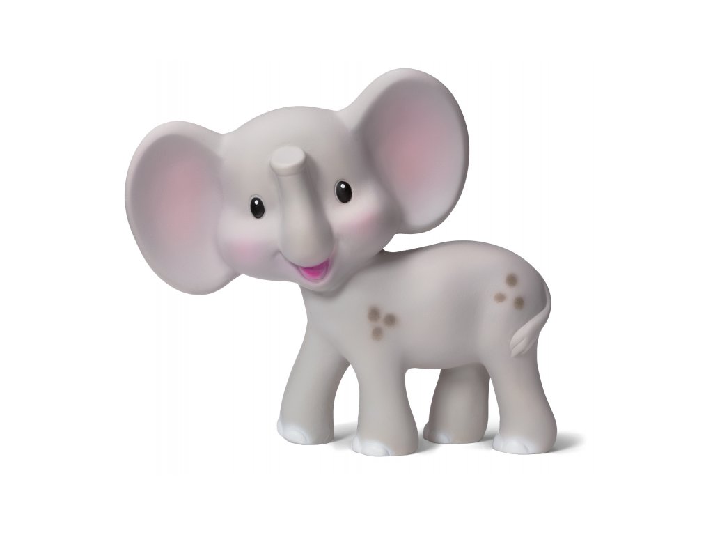 A cuki elefánt formájú rágóka rugalmas természetes gumiból készült. A változatos textúrák arra ösztönzik a babát, hogy a szájával fedezze fel, a fogíny masszírozásával a rágóka segíti a babát az első fogak kibújásában. A játék formája lehetővé teszi a könnyű tartást a kis gyermekkezek számára.