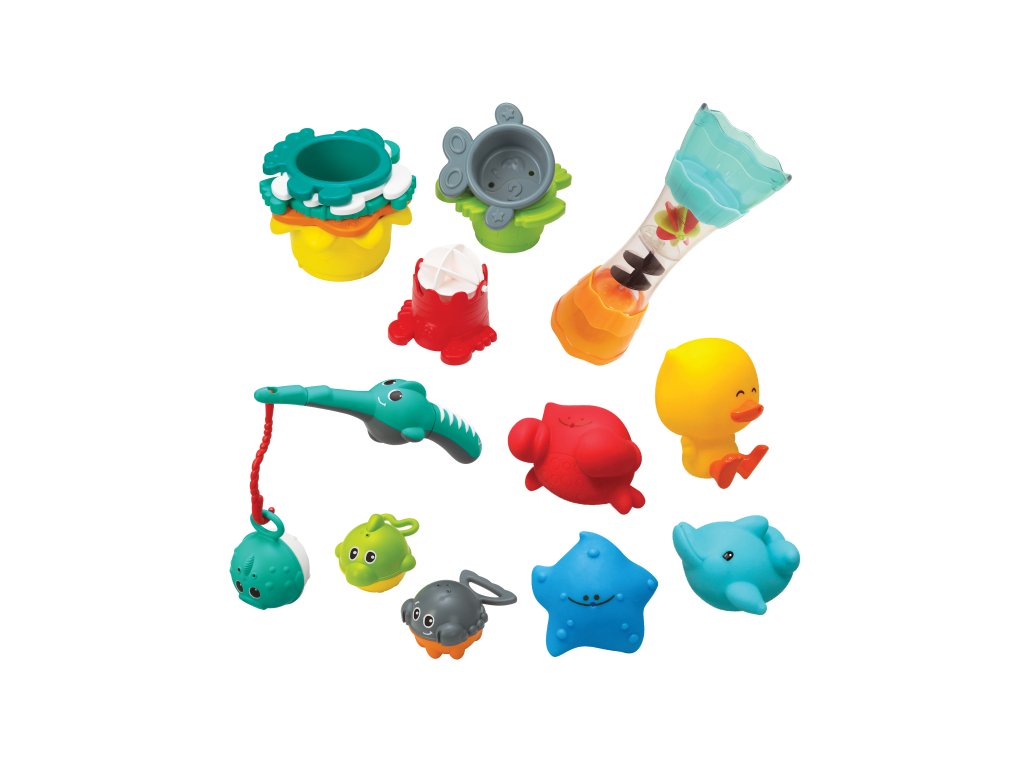 A nagyméretű, 17 darabos játékkészlet nemcsak a fürdéshez szórakoztatja gyermekét a mindennapi fürdés során. A vízi játékokkal való játék segít fejleszteni a finommotorikát és a gyermek egyes érzékeit.