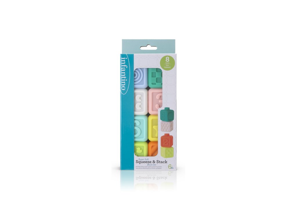 A különböző színű és textúrájú, számokat is tartalmazó puha kockák összekapcsolhatók a változatos játékhoz. Segítenek fejleszteni a baba tapintását és egyéb érzékeit.