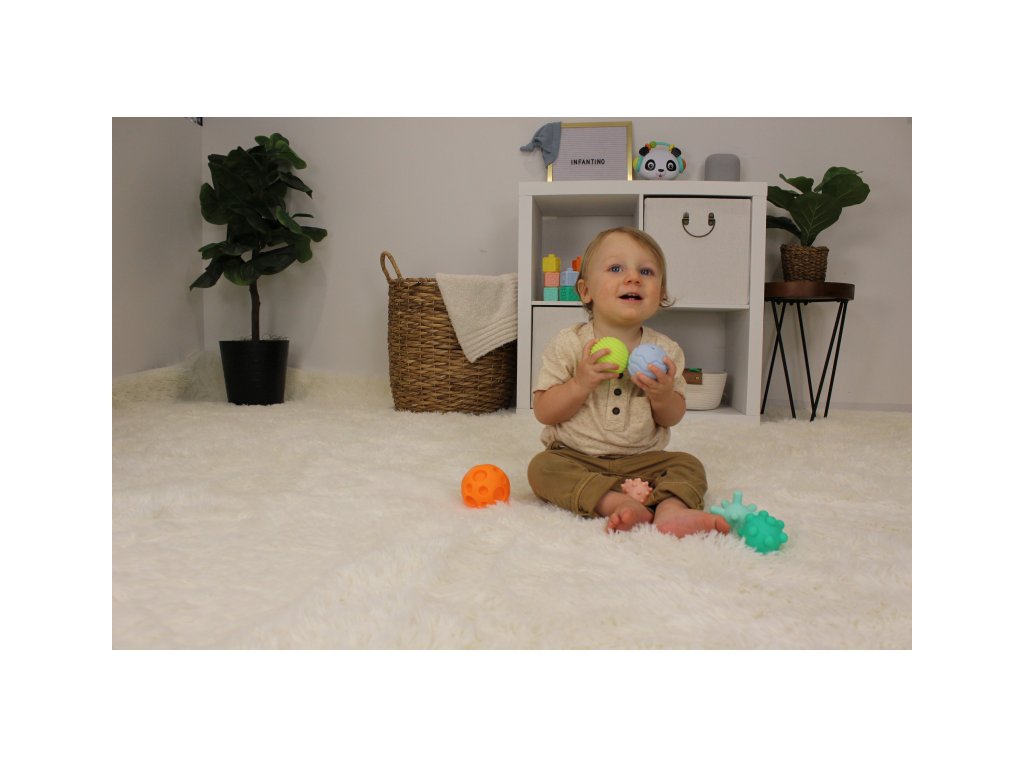 A különböző méretű, puha, színes labdák, különböző felületekkel és dudorokkal, alkalmasak a gyermekkel való játékra és pihenésre. Segítenek fejleszteni a baba tapintását és egyéb érzékeit.