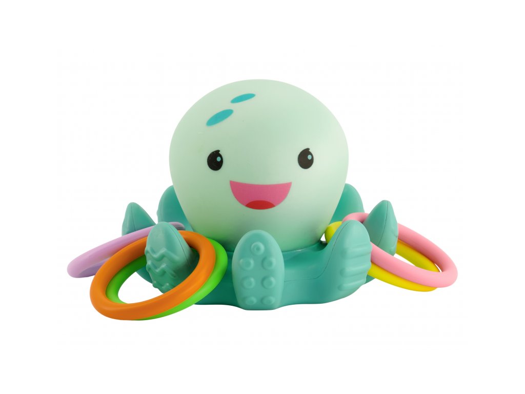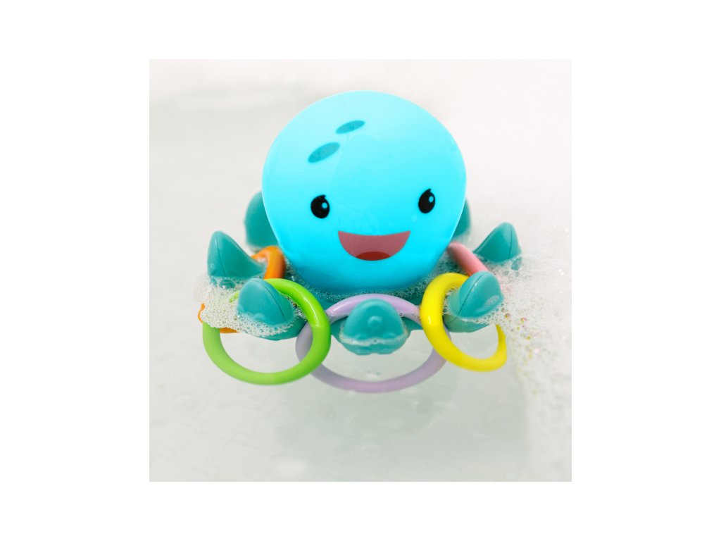 Az ellenállhatatlan fürdőjáték, egy mosolygós polip formájában, téged és a gyerekeidet is szórakoztatni fogja. A játék a vízbe helyezés után világít és színeket vált, a bekapcsoláshoz megnyomhatod az alján található szenzorokat is. A játékhoz 5 színes karika is tartozik, amelyeket a polip csápjaira lehet felhúzni.