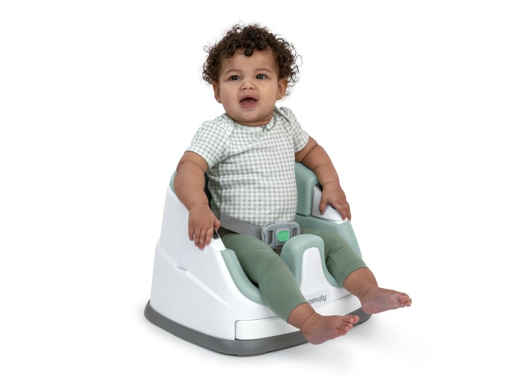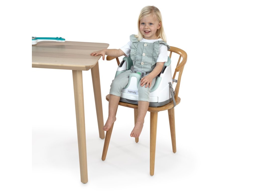 Az ülőke könnyen rögzíthető az etetőszékekre. A 2 az 1-ben funkció lehetővé teszi, hogy asztali ülésként, de padlóülésként is használja szabadidejében. A levehető pultnak köszönhetően a babának saját, tökéletes méretű asztala van, ahol a frissítők és a játékok is elérhetőek. Ha nincs használatban, kényelmesen lehajtható az ülés alá. Amikor a gyermek kinövi a magas széket, ez az ülésmagasító pont az, amire szüksége van.