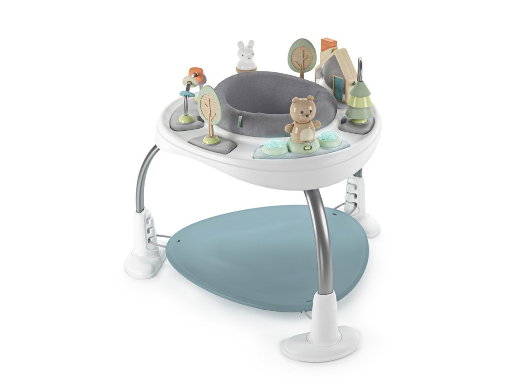 Az ülés és a ugráló fokozatosan játékká alakul az apróságok számára, tevékenységekkel és hálóval a játékok tárolására. Ahhoz, hogy a baba a megfelelő magasságban támaszthassa a lábát, vagy örömében ugrálhasson, a rugalmas lábtartó magassága 3 különböző pozícióba állítható a baba igényeinek megfelelően. Az ugrálóülés 360°-ban elforgatható a játékok és tevékenységek könnyű elérése érdekében. Az interaktív mackó játékos hangokat ad ki, zenét játszik és világít, ami aktiválja a baba több érzékszervét. Amikor a gyermek felnő, egyszerűen távolítsa el az ugrálóbetétet, és máris egy álló játszóasztalt hoz létre. Könnyen kicserélheti a gyermekülést a játékok tárolására szolgáló hálóra. Így rendet tarthat a játékok között, de kedvenc játékai mindig kéznél lesznek. A gyerekek imádni fogják a 11 lenyűgöző, természet által ihletett tevékenységet fényekkel és hangokkal, mint például az aktív panel macival, a fűzhető gyöngyök, a faház. Semleges, visszafogott design, amely minden enteriőrbe illik.