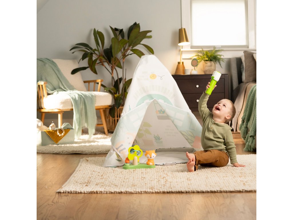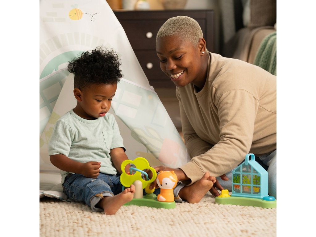 - Ösztönözze a képzelőerőt, valamint az okot és az okozatot a játékházzal, amely fényekkel, zenével és természeti hangokkal rendelkezik, hogy a baba „öntözze” és „napsütést” adjon a növényeknek; 3 AA elem szükséges (nem tartozék).