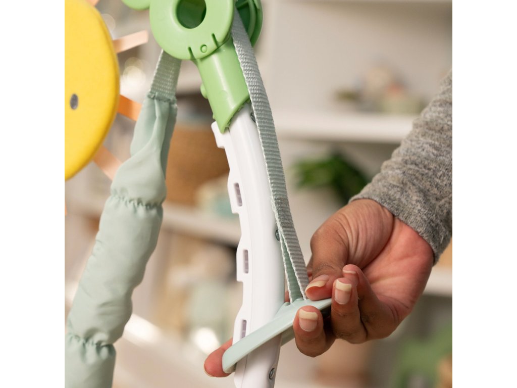 Az Ingenuity első aktív, minden az egyben központja, amely belépett a játék világába. Ez egy mérföldkő központ a hason fekvéstől a lábon állásig 6 az 1-ben! Ez a központ 6 különböző mérföldkő tevékenységet kínál a babáknak a nagy gyerekeknek! A szórakozás az első napon kezdődik a padló tornateremben, amely támogatja a nyúlást és a fogást. A összecsukható szőnyegen lévő játékhíd tartalmaz egy levehető Bomby plüss méhecskét, egy BPA-mentes felhő játékot és egy nap tükröt. A puha, steppelt és kárpitozott szőnyeg kényelmes helyet biztosít a gyermeknek a játékhoz otthon vagy útközben. A szőnyeghez tartozik egy tartópárna a további támogatás érdekében és csatlakozó hurkok a gyermek kedvenc játékainak rögzítéséhez. Inspiráld a kisgyermeked fantáziáját, miközben ok-okozati összefüggéseket tanul egy játék üvegházzal! Az üvegház fényeket, lágy zenét és természeti hangokat tartalmaz, hogy a baba „öntözhesse” és „napfényt” biztosítson a növényeknek. A tevékenység- és mérföldkőközpont működtetéséhez 3 AA elem szükséges (nem tartozék). A baba örömében fog ugrálni a 360°-os játékban 3 különböző játékállomáson. Az ugráló 4 különböző magassághoz igazodik. Ahogy gyermeke növekszik, ennek a központnak a jellemzői is növekednek – ami azt jelenti, hogy a lábra állás már a láthatáron van. Az álló pillanatokra az ugráló sima felületű tevékenységi asztallá alakul át a nyílt végű játékhoz. Az asztallábak fa kialakítása prémium érzetet biztosít! A ház támogatja az önálló játékot. Kövesse nyomon a baba fejlődését 12 havi mérföldkőkártyával és egy szárazon törölhető táblával. A mérföldkő központ a hasról a lábra állásig 6 az 1-ben tökéletes, nemsemleges ajándék, minden egyben a 0-48 hónapos gyermekek számára!