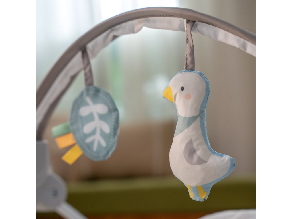 - 10 nyugtató dallam és 2 függő játék a levehető játékhídon – vizuális és hallási stimuláció a babának