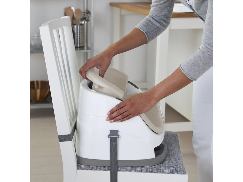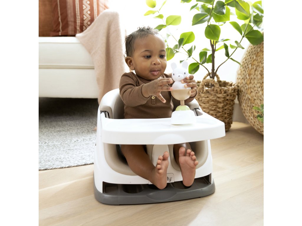 Az ülőke könnyen rögzíthető az etetőszékekre. A 2 az 1-ben funkció lehetővé teszi, hogy asztali ülésként, de padlóülésként is használja szabadidejében. A levehető pultnak köszönhetően a babának saját, tökéletes méretű asztala van, ahol a frissítők és a játékok is elérhetőek. Ha nincs használatban, kényelmesen lehajtható az ülés alá. Amikor a gyermek kinövi a magas széket, ez az ülésmagasító pont az, amire szüksége van.