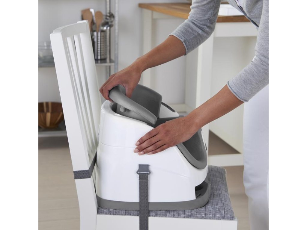 A magasító könnyen rögzíthető az étkezőszékekhez. A 2 az 1-ben funkció lehetővé teszi, hogy asztali ülésként, de padlóülésként is használja szabadidejében. A levehető pultnak köszönhetően a babának saját, tökéletes méretű asztala van, így a frissítők és a játékok is elérhető közelségben vannak.