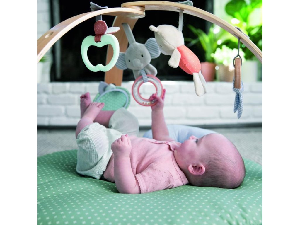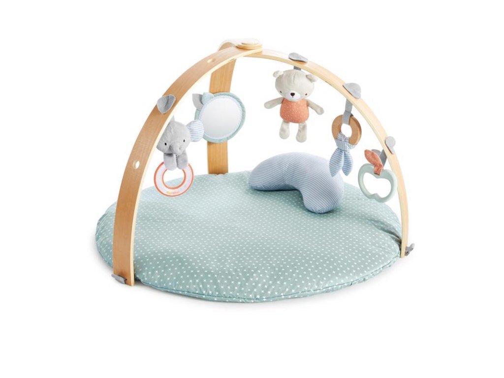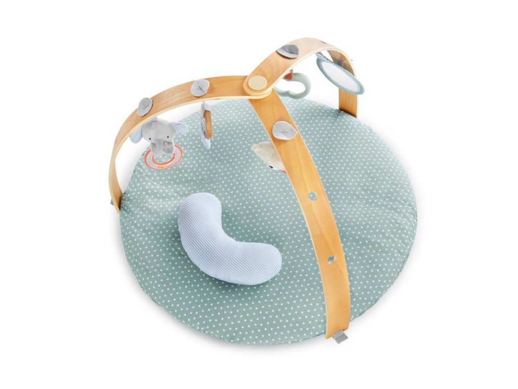 Játékos hely, amely szórakozást nyújt gyermeke számára, és rengeteg játékot, amely támogatja a fejlődését és az érzékszerveinek stimulálását. A finom dizájnú, kétoldalas alátét gyönyörűen illeszkedik minden háztartásba. A fa dizájnú, Slim Fold funkcióval ellátott játszóív biztonságos és kényelmes helyet teremt bárhol. Tartalmaz egy biztonsági tükröt is, amely támogatja a gyermek önfelismerését. A takaró könnyen tisztán tartható és mosógépben mosható. A levehető játszóívek lehetővé teszik a takaró egyszerű összehajtását és tárolását, így nem foglal sok helyet.