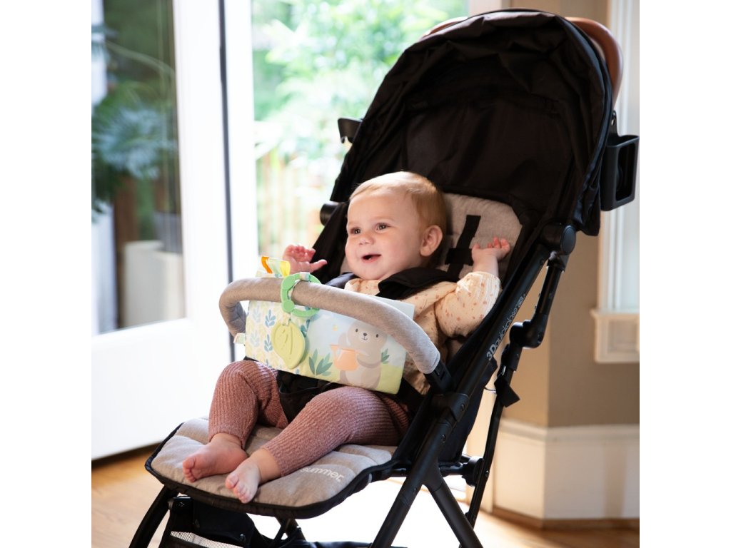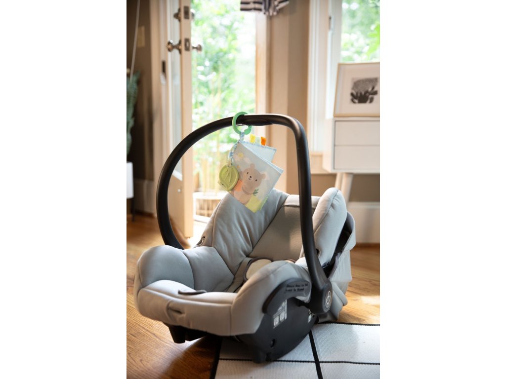 - A könyv részét képező C-gyűrű nagyszerűen rögzíthető a babakocsi fogantyúira és a pelenkázótáskákra.