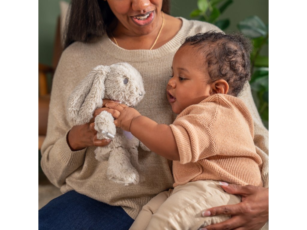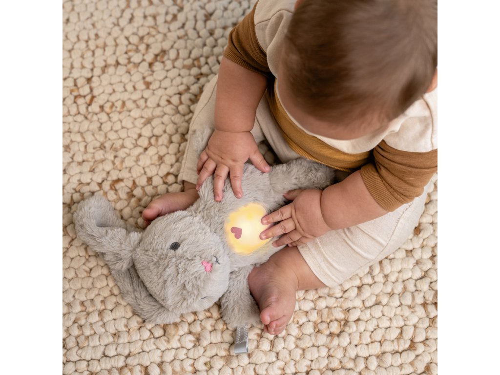Ismerje meg Sylvi nyuszit – egy kedves és kíváncsi barátot, aki minden baba szívét elnyeri! Napfényes természete feldobja a mindennapokat, és rengeteg "szuperképességet" kínál, amelyet gyermeke felfedezhet – beleértve a szívdobogását is. Sylvi közvetlenül reagál a baba igényeire. Ha sír, lejátszik egyet a 10 megnyugtató dallam közül, és vidám kuncogással lep meg. Mozgás után a „fülei” 2 percre aktiválódnak, és figyelik, hogy a babának szüksége van-e vigasztalásra. Ha igen, Sylvi elindít egy 7 perces altatódalt. Puha hasa 5 különböző színben világít, és reagál a gyengéd nyomásra. Minél több időt tölt a baba Sylvivel, annál inkább rájön, milyen hűséges és érzékeny barát. Születéstől fogva alkalmas. Tökéletes ajándék babaváró bulira, születésnapra vagy karácsonyra.