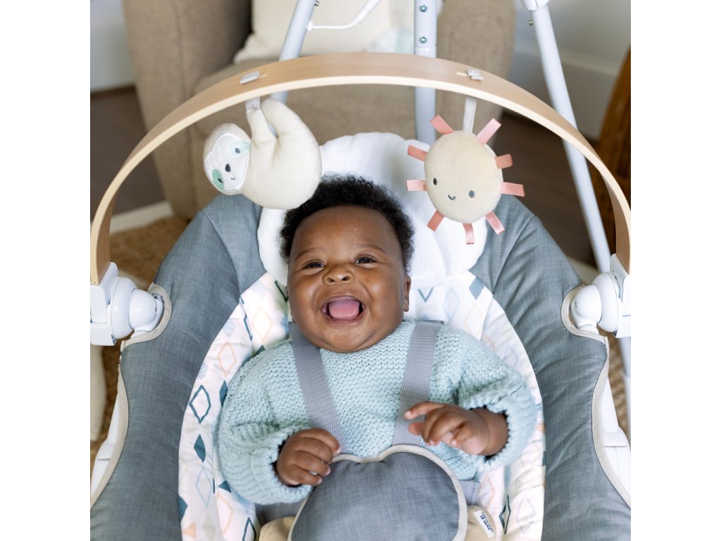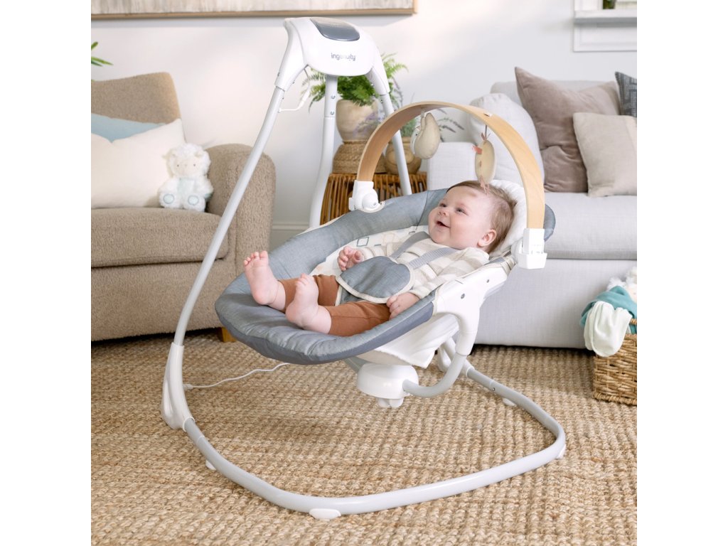Szórakoztassa gyermekét, és egészítse ki otthona dekorációját az Ingenuity SimpleComfort – Parker kompakt hintával.