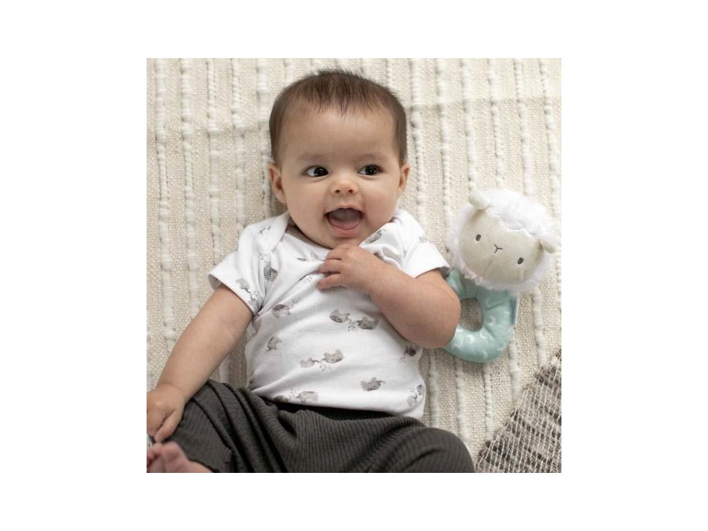 Az Ingenuity Sheepy bárány csörgője még a legkisebb kezek tenyerében is elfér. A prémium plüss anyagok olyan puhák, hogy a baba újra és újra gyakorolni akarja a megfogást.