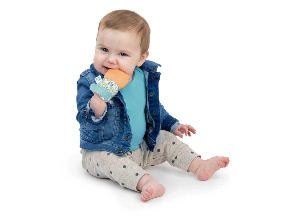 Az Ingenuity Teething Mitt – Nally tökéletes a baba fájó ínyére. Ez a baba fogzási kesztyű tartalmazza a bájos Kitt rókafigurát. A texturált fogzási kesztyű BPA-mentes szilikonból készült. A rágóka masszírozza a baba fájó ínyét, és enyhíti a növekvő fogakat. A kesztyű állítható pántja biztonságos illeszkedést biztosít, ahogy a baba növekszik. A kesztyű kialakítása ideális azoknak a babáknak, akik még nem tudják megragadni a rágókát, és segít megelőzni a baba megkarcolását is. A textúra segíti a babát a tapintás felfedezésében és tanulmányozásában.
