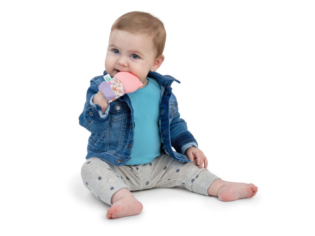Az Ingenuity Teething Mitt – Nally tökéletes a baba fájó ínyére. Ez a fogzási kesztyű aranyos Nally bagoly figurát tartalmaz. A texturált fogzási kesztyű BPA-mentes szilikonból készült. A rágóka masszírozza a baba fájó ínyét, és enyhíti a növekvő fogakat. A kesztyű állítható pántja biztonságos illeszkedést biztosít, ahogy a baba növekszik. A kesztyű kialakítása ideális azoknak a babáknak, akik még nem tudják megragadni a rágókát, és segít megelőzni a baba megkarcolását is. A textúra segíti a babát a tapintás felfedezésében és tanulmányozásában.